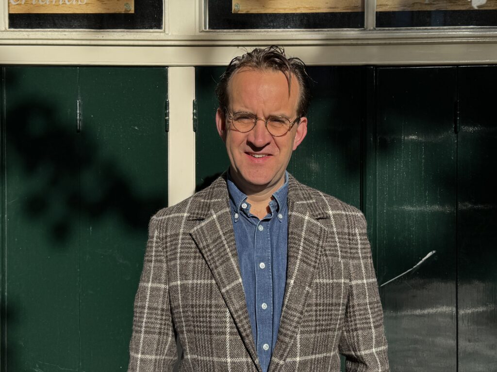 De stof die Roel hier draagt is van Dugdale en is gemaakt van ongeverfde wolvezels. In de range van dit Engelse stoffenhuis uit Huddersfield dus alleen maar bruintinten in verschillende wevingen zoals deze overruit, een hondentand, birdseye of een fraaie twill. Kleuren en weeftechnieken die ideaal zijn voor het najaar. Kom je struinen door het aanbod? We maken graag een fraai (tweed) jasje of pak voor je. En dan is onze voorkeur The Easy. Een uniek jasje dat je alleen maar bij NEW TAILOR kan laten maken. Een belevenis op zich.