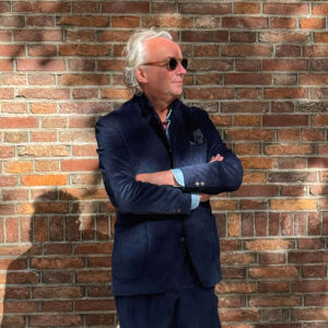 Uiteraard kun je er ook een broek bij laten maken zodat jet het ook als pak kan dragen. Marcel draagt hier een diep donkerblauwe corduroy van Caccioppoli. De ‘whale’ is lekker breed en speelt met het zonlicht. Van afstand oogt het als een formeel pak. Maar de schijn bedriegt. Het draagt en is heerlijk casual. En gewoon in een kleur die wij mannen gewoon graag dragen en ons goed staat: blauw. Krachtig. Rustig. Loyaal.