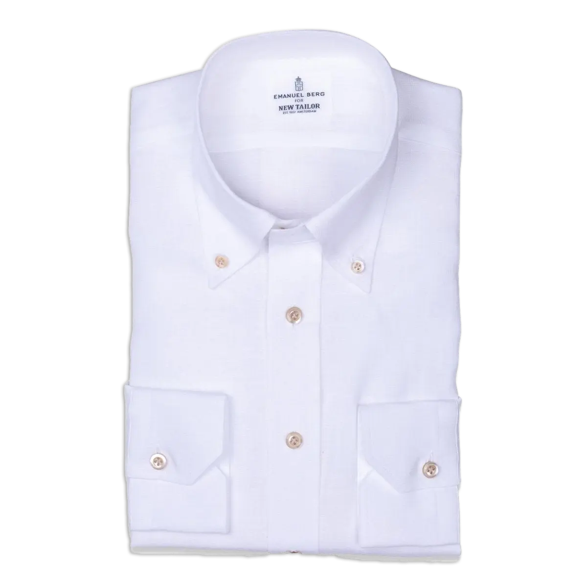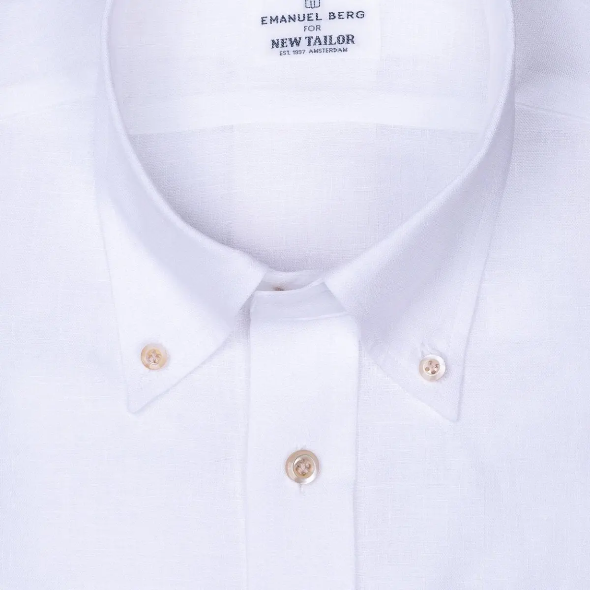 Superfijn linnen shirt, hier uitgevoerd in een button-down en bruine knopen en een button down kraag. 100% linnen van Albini. Het perfecte shirt voor onder jouw linnen jasje, op een linnen chino of korte broek. Als je online bestelt, bellen we altijd nog even voor de details.
