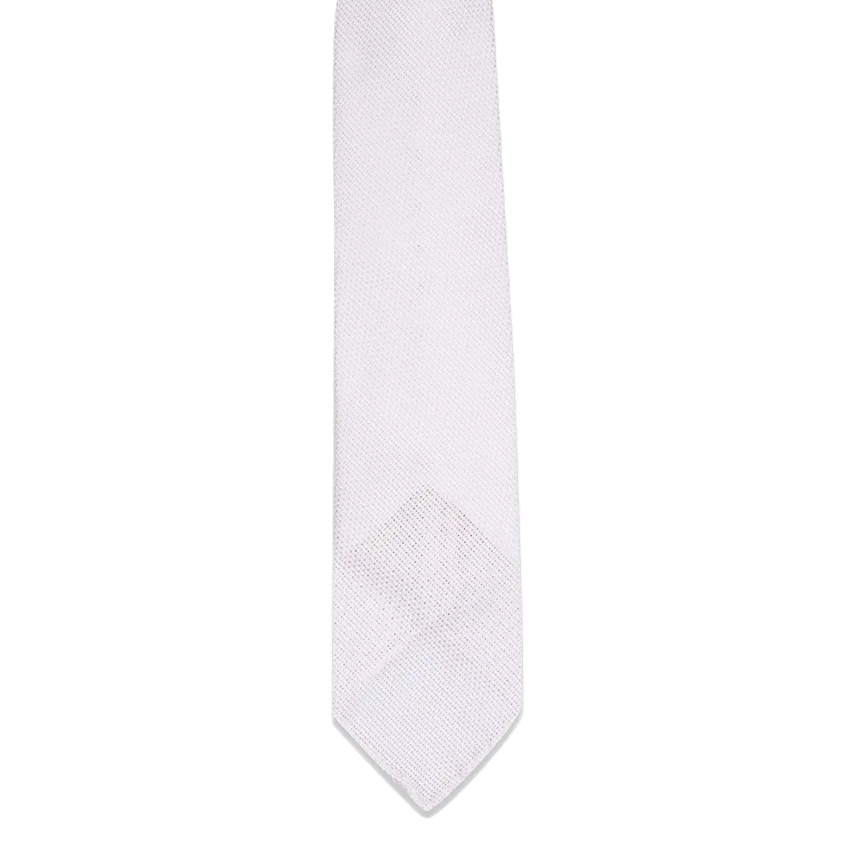 Zijden ongevoerde das met ‘handrolled ends’, handgemaakt in Italie. De das is 8cm breed.
